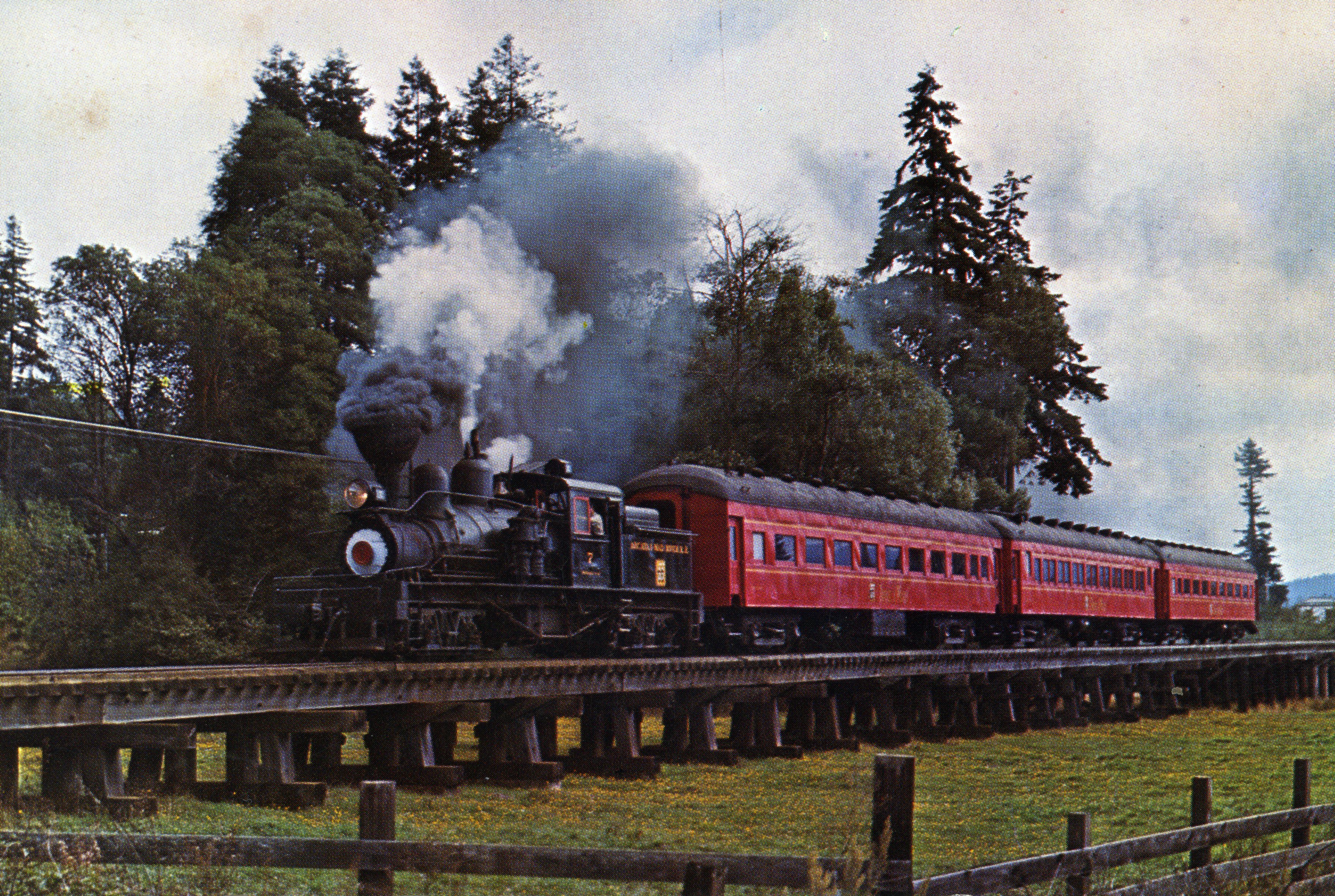Redwood lumber tours were available on the Annie and Mary; advertised as the West's oldest railroad.
