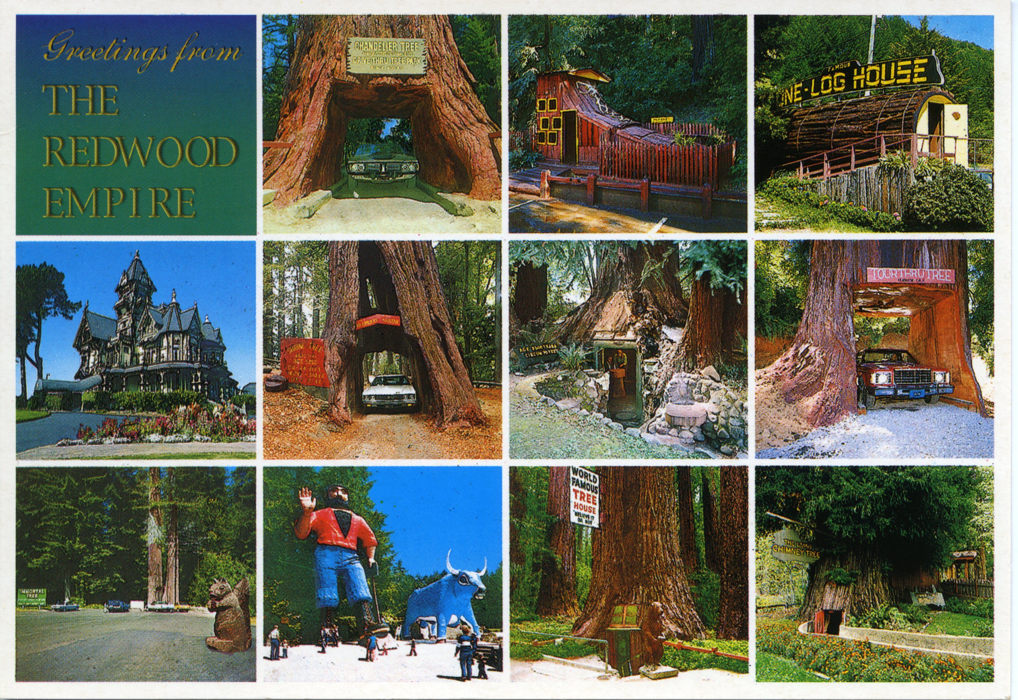 These attractions can be seen along Redwood Highway 101 and the Avenue of the Giants Highway.
